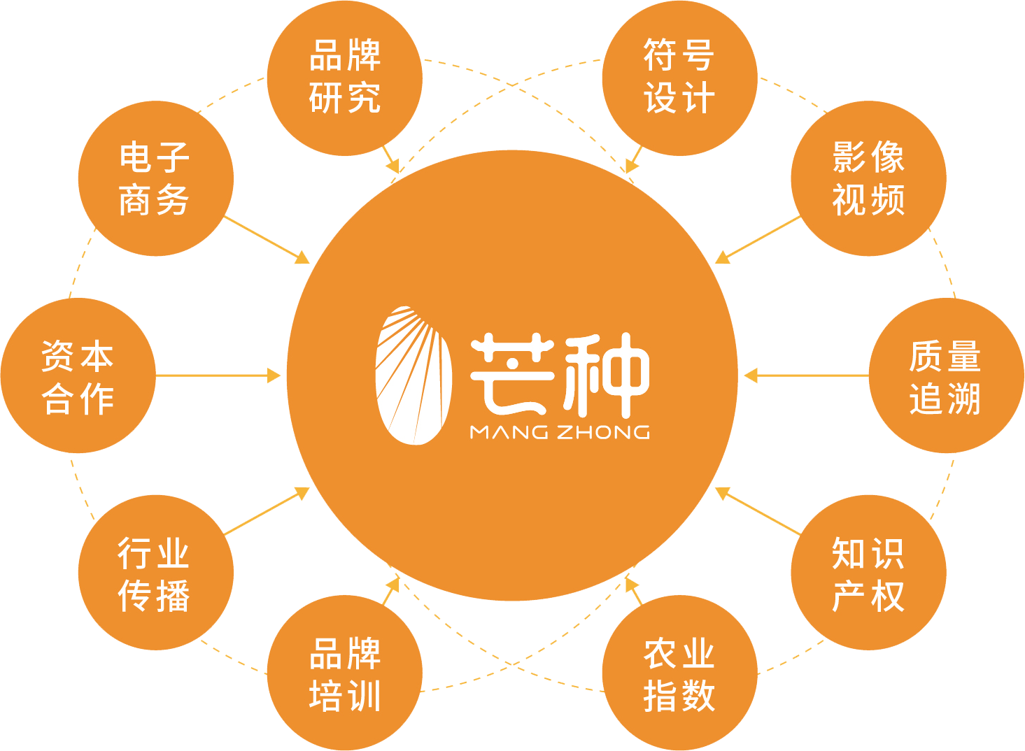 公司背靠國内資深品牌專家團隊,引領中國農業品牌建設聯盟,深耕品牌農業、播種農業未來,著(zhe)眼於(yú)農業品牌化進程 ,開展理論研究 、戰略規劃、符号設計、影像視頻、電子商務、質量追溯、行業傳播等全方位品牌管理咨詢服務,打造農業品牌化産、學、研、用一站式服務平台 。