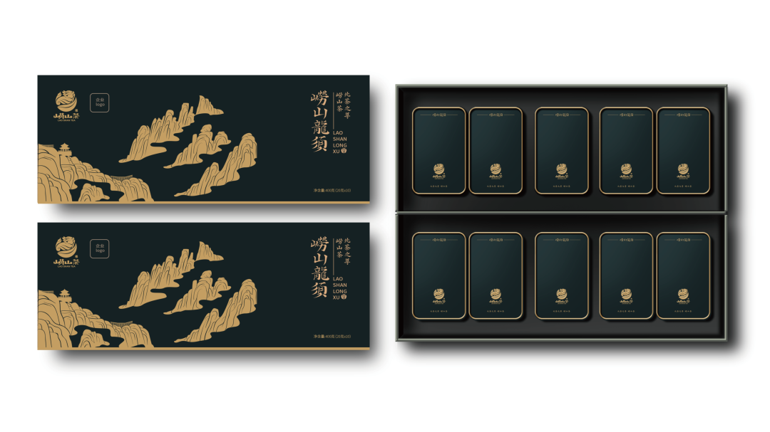 品牌産品包裝在凸顯質感的形式下,“崂山龍須”字體採(cǎi)用瞭(le)丘處機的字迹,進一步強化崂山茶的文脈價值。