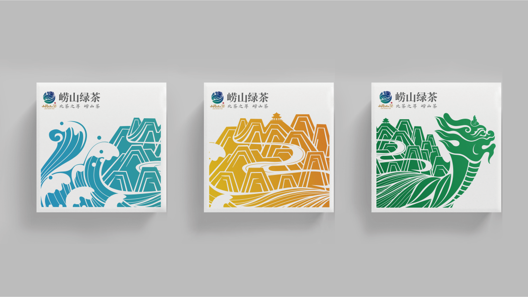 芒種團隊同步設計瞭(le)崂山茶的品牌輔助圖形,近處是一隻巨鳌和洶湧的海浪,遠處則是雲霧缭繞的高山和道觀。借助上述元素的巧妙融合,展現崂山茶的生長(zhǎng)環境,表明崂山茶是在山海環繞之間,深受道文化滋養的優質好茶。