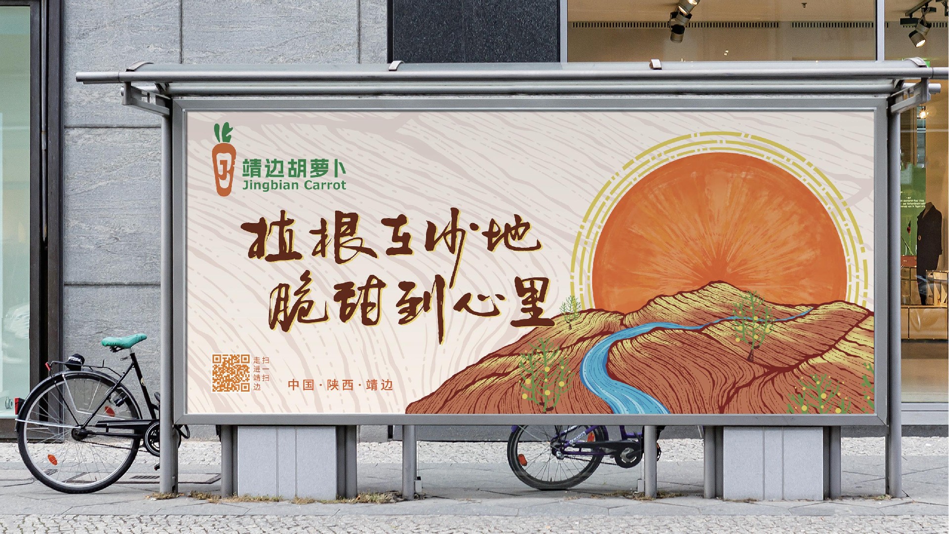 圍繞靖邊胡蘿蔔“植根在沙地,脆甜到心裏”的核心價值,團隊從産區特征、産品特色、區域形象等維度,綜合提煉靖邊胡蘿蔔的差異形象、創造瞭(le)獨屬於(yú)靖邊胡蘿蔔的美好場景。