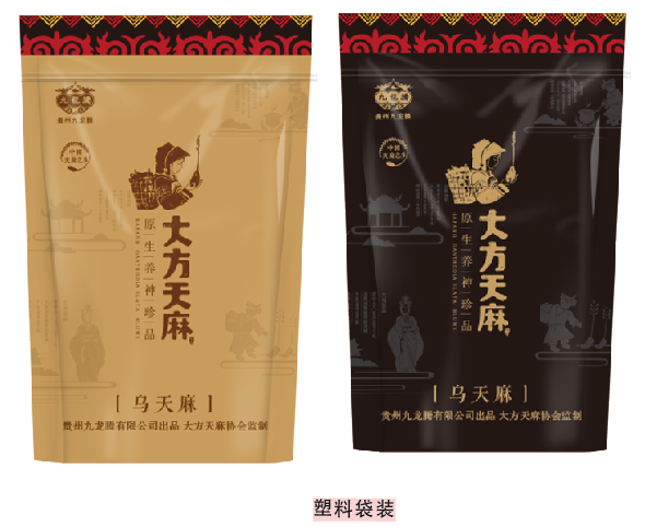 大方天麻的品牌主形象以著名的奢香夫人即彜族少女的形象爲創意核心,結合藥農背著(zhe)背簍在山中採(cǎi)藥的形态,同時,以雙手捧奉的姿态體現大方天麻之珍貴。