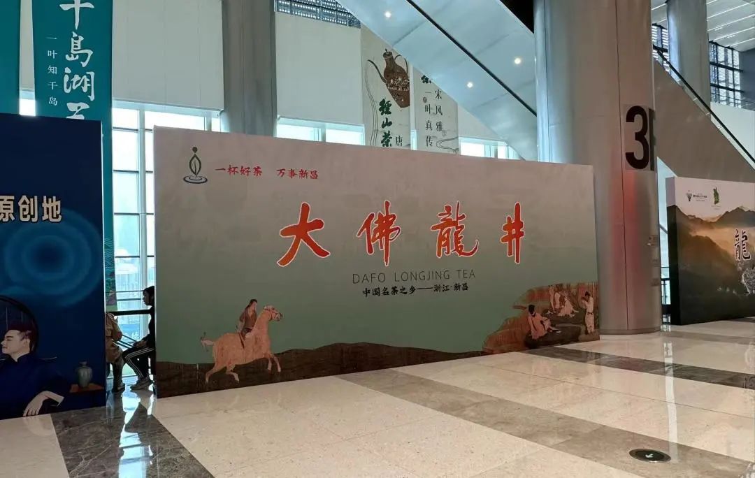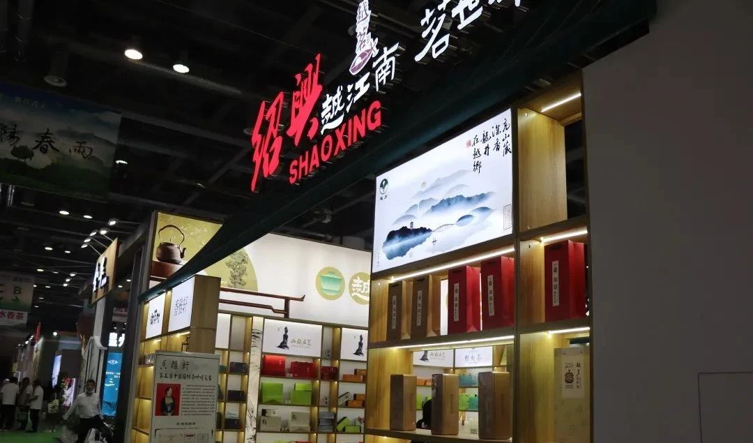 在紹興展館的另一側(cè),大佛龍井的産(chǎn)品包裝琳琅滿目。
