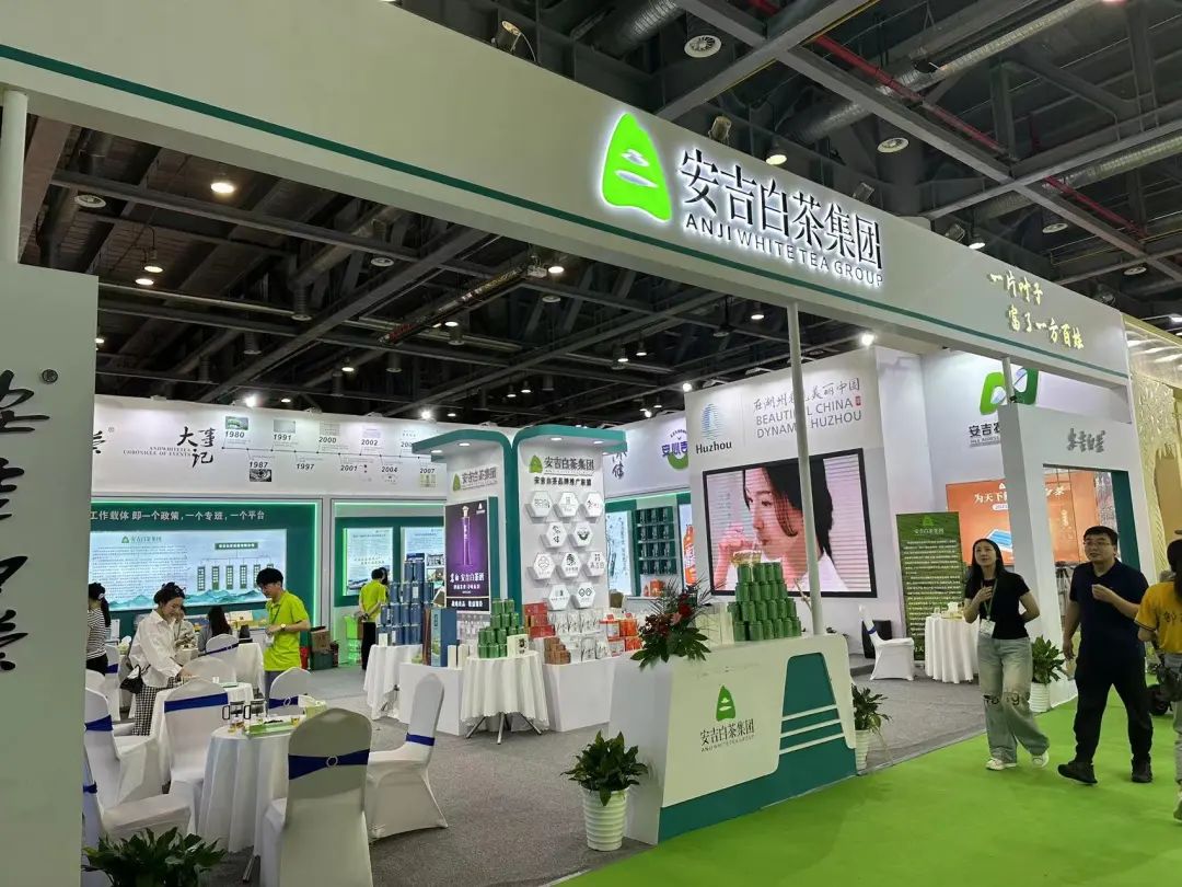 走出湖州館(guǎn),我們在企業展區、新式茶飲展區也尋覓到安吉白茶企業代表——安吉白茶集團、極(jí)白與龍王山。