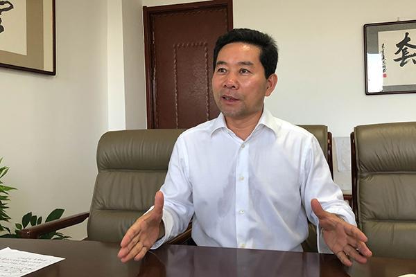 2019年7月19日,内蒙古巴彥淖爾市委書記常志剛在自己的辦公室裏接受澎湃新聞記者採(cǎi)訪。爲瞭(le)讓“天賦河套”的産品擁有更大的知名度與市場,常志剛曾先後前往北京、香港、以色列等地爲“天賦河套”奔走,親自代言推銷。澎湃新聞記者 趙實圖