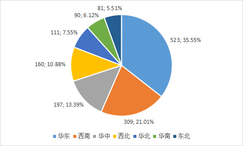 三、 區域比較:華(huá)東(dōng)地區占品牌聲譽前100的半壁江山