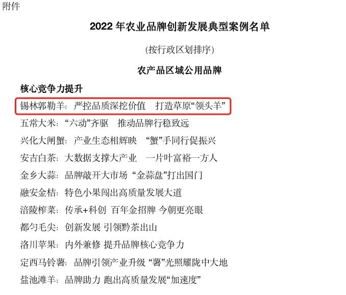今年,在農業農村部組織發布的農業品牌創(chuàng)新發展典型案例評選活動中,錫林郭勒羊區域公用品牌成功入選2022年農業品牌創(chuàng)新發展典型案例,成爲全内蒙唯一入選的農産(chǎn)品區域公用品牌。