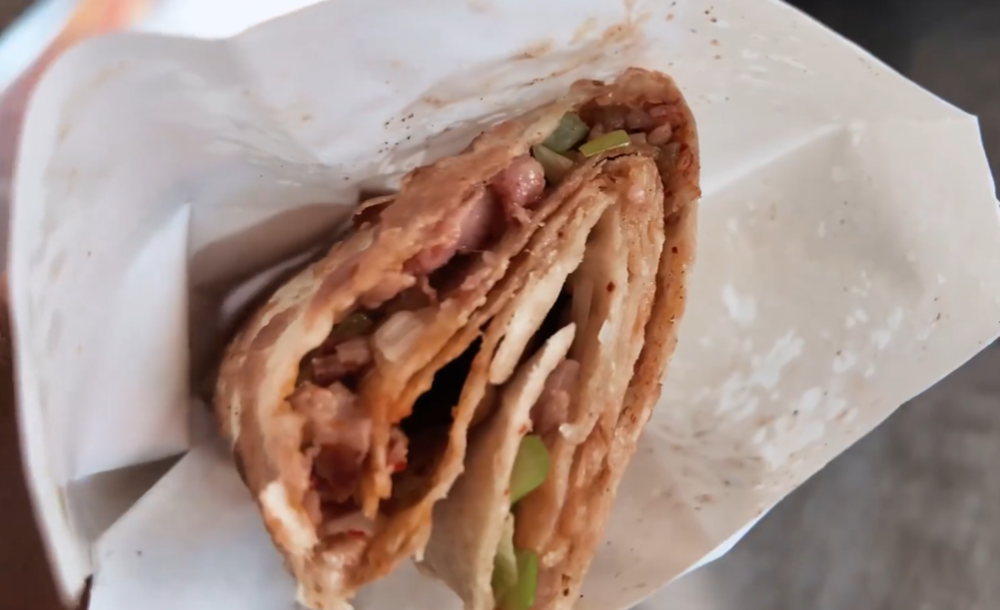 收整片刻,大家相約不遠處的小夜市,這晚風橫沖直撞,但絲毫沒有吹散攤主們的熱情。羊肉炕馍、炊餅、小籠灌湯包、砂鍋等各色各樣的小吃應接不暇。随手買瞭(le)兩個羊肉炕馍,我們與攤主奶奶閑聊瞭(le)起來,炕馍是開封最有代表性的夜市小吃之一,也是隻有在開封才能吃到的經典小吃。做瞭(le)40多年的炕馍的她,動作麻利,往燒熱的鏊子上薄薄刷瞭(le)一層羊油後就開始不停轉動炕馍餅身,還向我們熱情展示瞭(le)如何給炕馍翻面的技巧,或許是受到熱情感染,兩個炕馍吃完仍意猶未盡,盡管迎著(zhe)風與雪花行走,河南的晚上似乎也沒有那麽冷。