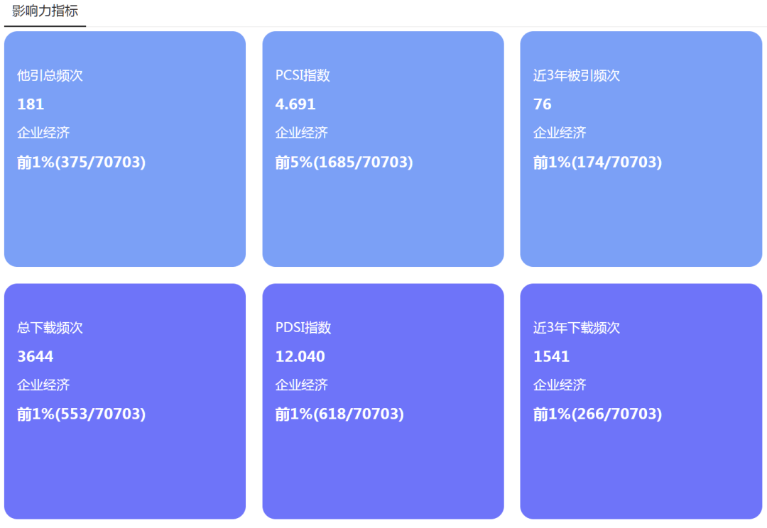 《“品牌”定義新論》從理論根基層面,革新對品牌概念的認知,重塑品牌研究框架,具有品牌研究的實踐指導意義。中國知網系統對其的“引證評價報告”顯示,“總體影響力:文獻總被引頻次爲182,他引頻次181,文獻他引頻次在‘企業經濟’領域排名前1%,文獻總下載頻次爲3644,在‘企業經濟’領域排名前1%;長效影響力:近3年被引頻次76,在‘企業經濟’領域排名前1%;相對影響力:PDSI指數爲12.040,在‘企業經濟’領域排名前1%”。值得一提的是,此篇學術成果的五項影響力指數在7萬多篇“企業經濟”領域學術成果中排名前1%,並(bìng)且在前1%中也處於(yú)前列,部分影響力指标排名近前1‰。