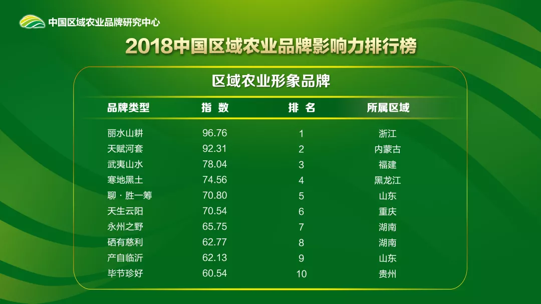 2018中國(guó)區域農(nóng)業品牌影響力排行榜