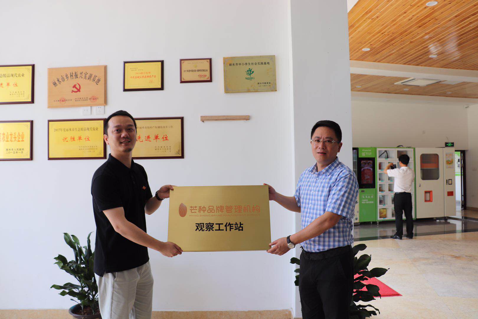 5日上午,與會嘉賓們還實地參觀瞭麗水市百興真菌生物科技有限公司、麗水山耕夢工廠、麗水魚躍釀造有限公司、花園小鎮旅遊地商品體驗中心。期間,在麗水山耕夢工廠,芒種品牌管理機構總經理莊慶超和麗水山耕夢工廠總經理屠劍輝,共同爲“芒種品牌管理機構觀察工作站”揭牌。