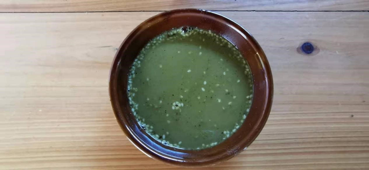 客家人制擂茶,以婦女見長。隻見她抓起一把好茶葉,适量芝麻,幾片甘草等,一並(bìng)置入擂缽,手握擂棍沿缽内壁順溝紋走向有規律旋磨,間或缽中間擂擊,将茶葉等研成碎泥,即用撈子濾出渣,再沖入沸水,适當攪拌,佑以炒米、花生米、豆瓣、米果、燙皮等,一缸集香、甜、苦、辣於一體的擂茶便制成瞭(le)。