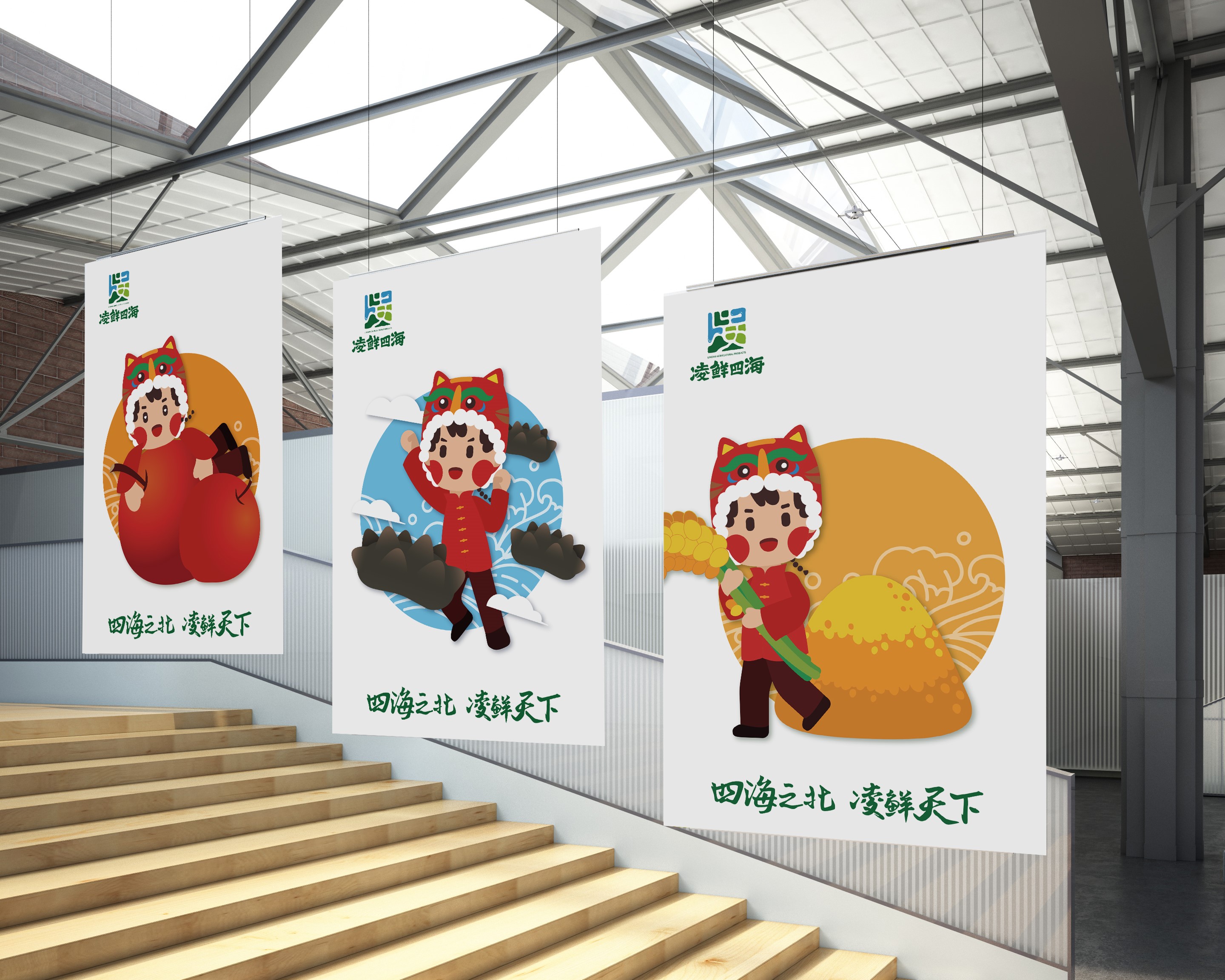 有瞭(le)具有差異化的品牌名稱(chēng)和品牌口号,也需要通過差異化的品牌形象進行傳播,更生動形象地展現給消費者。因此,項目組進一步對“淩鮮四海”的品牌符号進行瞭(le)創意。