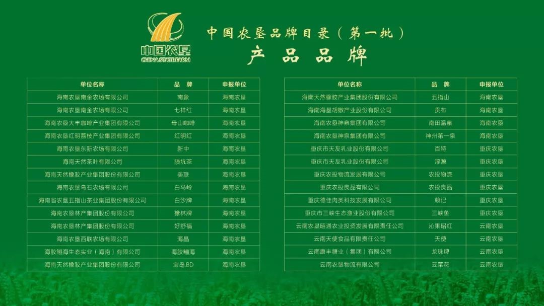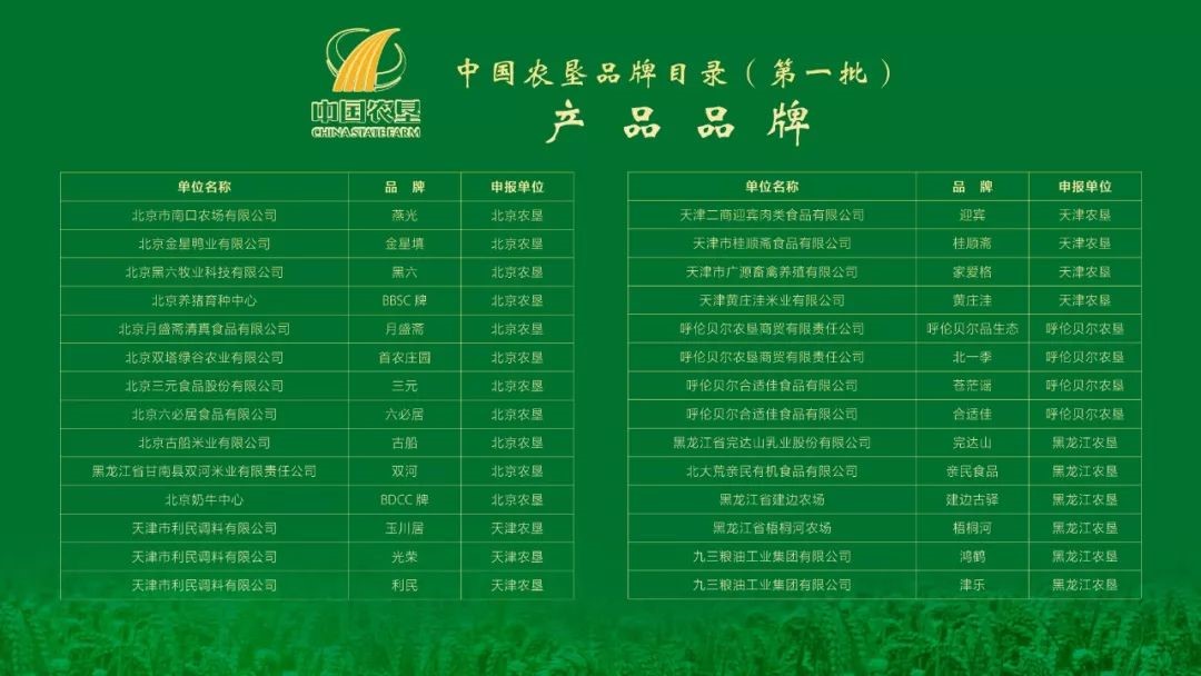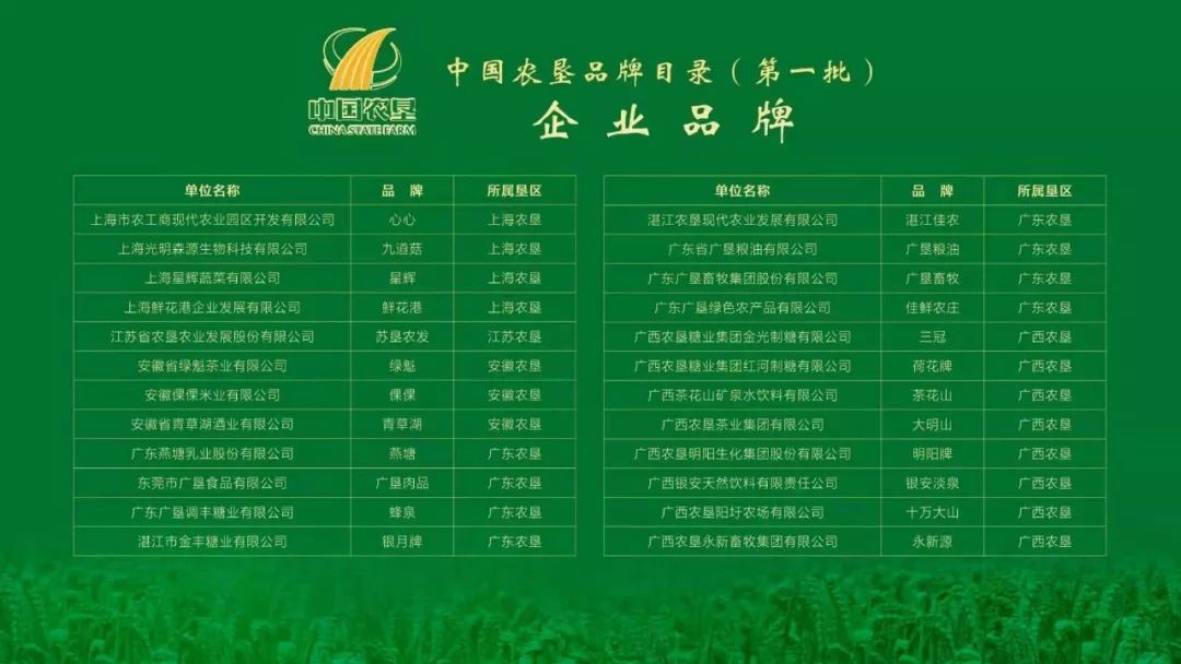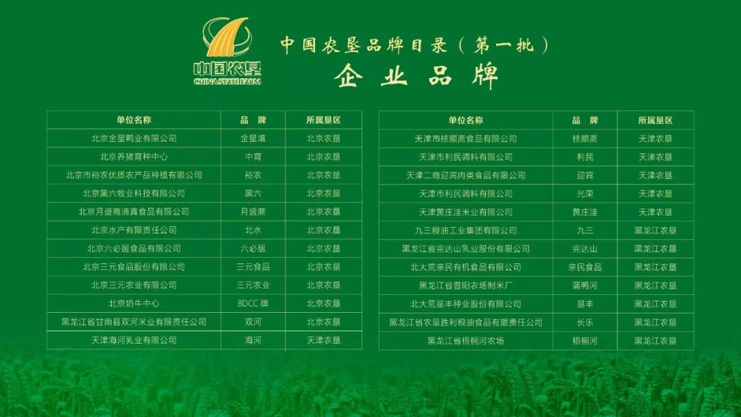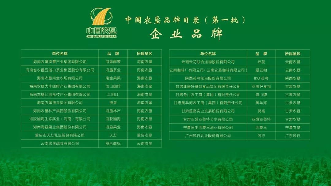 中國(guó)農墾品牌目錄(第一批)企業名單(dān)如下: