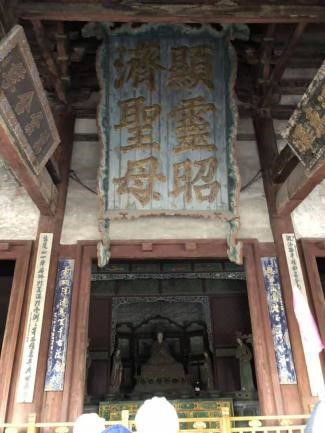 主殿是炎帝金身塑像所在地,隻見老祖宗坐在金碧輝煌的聖壇上,慈眉善目,滿臉微笑,左手持一束稻穗,右手拿兩朵靈芝,腳邊還放著(zhe)他的竹筐,裏邊裝滿瞭(le)藥草。由於年湮代遠,神農的準確樣貌已無處可考。目前全國各地不同的古建寺廟中流傳下來的炎帝神農相貌各異,慈祥的醫者、威武的大帝、牛首人身的形象…而在山西炎帝陵,則更爲獨特——神農的臉呈黑色。這是山西人爲瞭(le)銘記和追憶神農當年爲拯救百姓,親嘗百草而中毒的事迹特别設計。