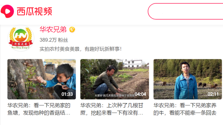 華農兄弟的視頻由其成員之一胡躍清親自拍攝,雖然也需要取景、編(biān)排、剪輯,但沒有多餘的技術處理,拍攝背景也是實實在在的老家農村,出鏡的主人公劉蘇良是真實的農民養殖戶,“兄弟”二人穿著(zhe)樸實,言行舉止都是親切的農民形象,觀衆對這些原汁原味的場景十分買賬。