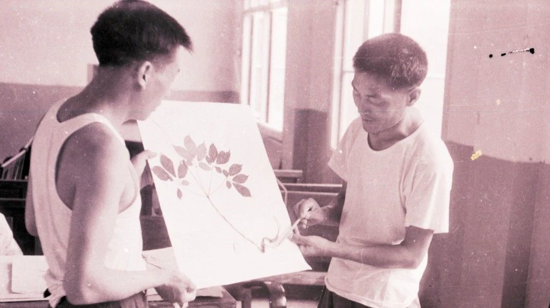 1983年韓(hán)省華在慶元縣與植物分類學家吳鳴翔先生研究百山祖的竹節人參(cān)