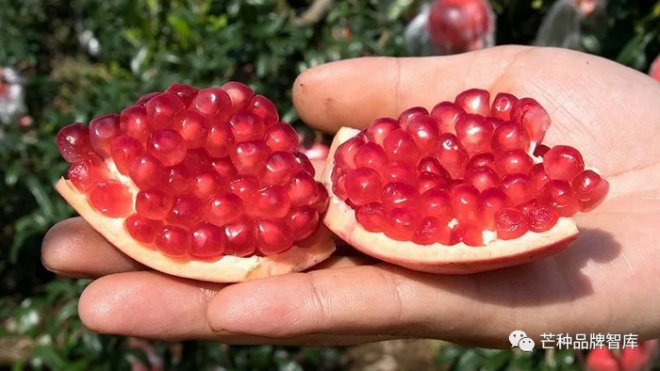 說是酸甜,其實石榴含糖度並(bìng)不低,一顆臨潼石榴的糖度均在16~18左右。口感上,稍帶(dài)點石榴特有的酸,讓甜味更顯得清新不膩。