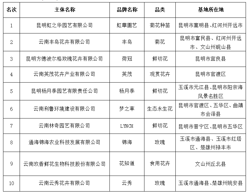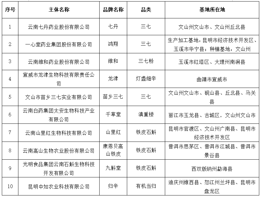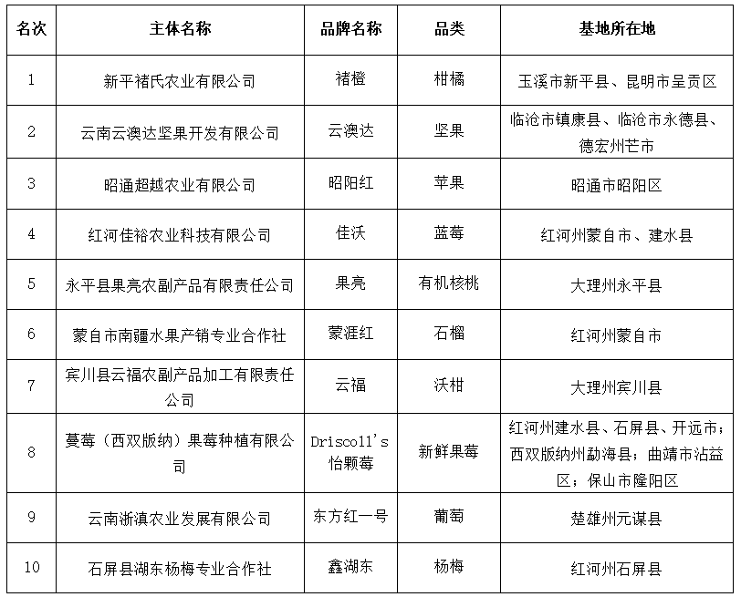 以下爲2021年雲南省“10大名品”和綠色食品“10強企業”“20佳創新企業”名單。