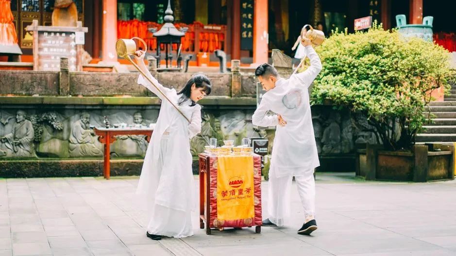 如果僅僅是蒙頂山上的茶祖故事,還不足以體現蒙頂山茶的獨特之處,必須回顧其貢茶曆史,方能感受曆史對其的厚待。唐玄宗天寶元年(742年)蒙頂山茶開始入貢皇室,從此名播神州,至清末完成貢茶使命,此間曆經 1169年,是名副其實的五朝貢茶。其中,唐朝蒙頂山茶被當做國禮送往日本,宋朝神宗下诏“專以雅州名山茶爲易馬用”,清朝蒙頂山茶更是成爲瞭(le)皇室祭祀太廟之物,其地位可見一斑。在參觀蒙頂山茶史博物館的時候,我們看到瞭(le)蒙頂山茶在清朝時期作爲祭祀之物的制作流程,制茶時各個寺院各司其職,“千佛寺專管種茶,淨居寺專管採(cǎi)茶,智矩寺專管制茶,天蓋寺專管評茶”,制成的茶葉被裝進銀瓶中進貢,極其講究,讓人們感受到瞭(le)貢茶的精緻珍稀。