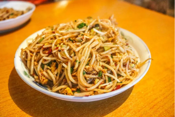 更值得一提的是,萍鄉炒粉。這是與南昌拌粉、柳州螺蛳粉齊名的存在。炒粉所用的粉是粳米磨成,機器擠壓成型。鍋裏淋上一圈油,放進米粉,再加點辣椒、豆芽、擦菜,鐵鏟(chǎn)與鍋壁互相交手幾個回合,一碗萍鄉炒粉就熱氣出鍋瞭(le)。套用萍鄉方言來表述就是:“個碗幾擦菜炒粉硬是看得都跌口水!”