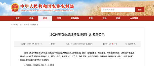 芒種關注 | 2024年農業品牌精品培育計劃名單公示結束!芒種含量10%+