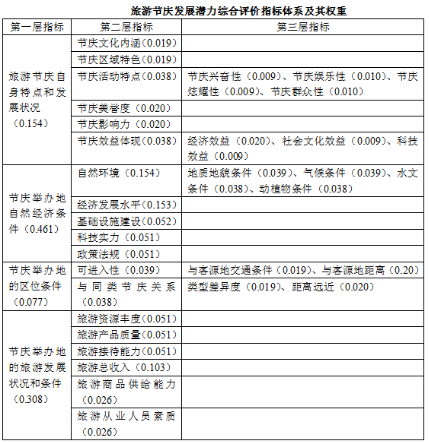 旅遊節慶發(fā)展潛力綜合評價(jià)指标體系及其權重