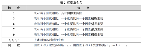 一級指标的重要性採(cǎi)用相互比較的方式體現,填寫說明如下,對(duì)相關指标進行兩兩對(duì)比打分,打分标準如表2所示: