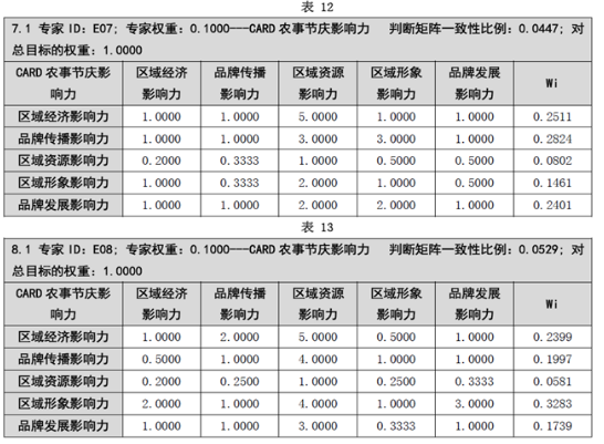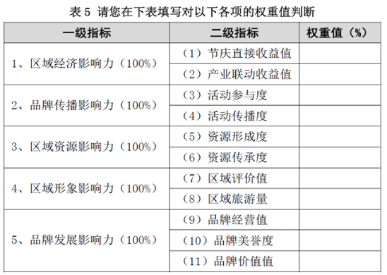 至於(yú)節慶活動的内容獨特性,則要依賴當地獨有的農業自然資源和農業、農俗、農事等與區域農産品的品牌來源、産品特色、文化特色、特有儀式等相關内容,其活動内容和儀式程序等具有較大的目的性和局限性,同時也具有其獨特的不可複制性。節慶活動的主體也往往是當地區域政府、相關行業協會、相關政府職能部門、合作社或農戶等,這些主體的社會分工和地域分布也決定瞭(le)他們所舉辦的節慶是要以某確定區域的風俗民情和經濟發展狀況等衆多因素爲依托的 。如此,此種農事節慶活動就不可避免的要受到所在區域的影響和局限,由此,評價模型的建構如果單純以消費者調查形式獲得數據就會産生局限。爲瞭(le)保證模型建構的科學性,本研究採用瞭(le)更科學的方法來確定模型中各指标的權重系數,具體操作将在後文的模型建構方法中詳細論述。