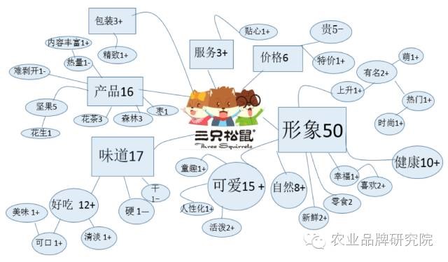 採(cǎi)用言語解析法得出的“三隻松鼠”的網(wǎng)民心目中的品牌形象