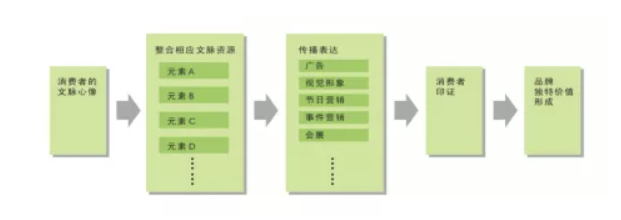 根據以消費者爲中心的品牌塑造原則,要發現文脈價值,形成文脈對品牌構築的作用程序 ,首先要探索、發現消費者的“文脈心像”,即消費者心目中有關品牌的文脈資源與文脈消費價值傾向;繼而,考察品牌本身是否有相關的文脈資源,並進行相關整合與傳播表達,並經由消費者認知印證,消費者認可這一文脈對自身的價值;進行兩者之間的對應性分析 ,選擇與消費者“文脈心像”同構共振的文脈核心意涵,並進行有效傳播, 品牌的獨特文脈價值才能形成。