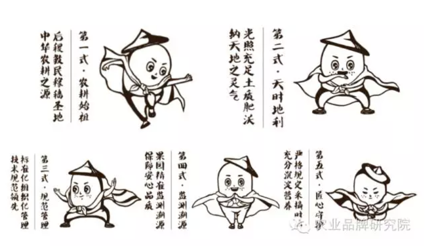 “下功夫,成好果”,“功夫”是核心重點,是和武功縣内外兼具的鏈接點,亦是武功猕猴桃符号創意的出發點。将功夫元素和猕猴桃結合,通過拟人化的表達,進一步加深消費者對武功、對功夫、對品牌核心價值的認知。基於此,創意武功猕猴桃的虛拟品牌代言形象“武功小子”。