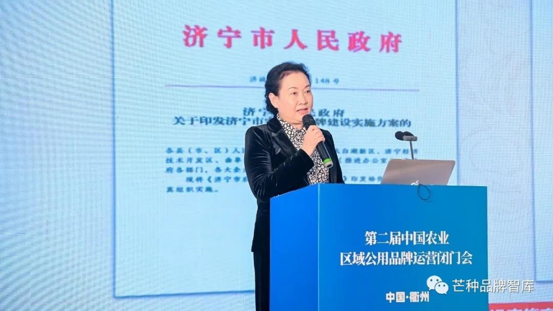 濟甯市農業農村局三級調(diào)研員田武菊分享瞭(le)“濟甯禮飨”與各區縣子品牌及企業子品牌的互動、協同發展經驗。