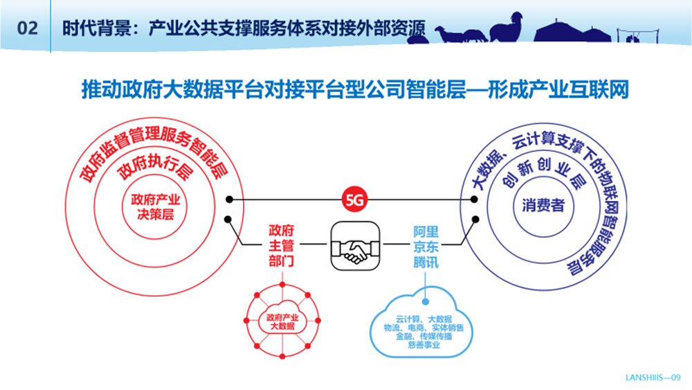 我認爲主要通過區域公用品牌運營,推動産業協同全面降低産業鏈成本和提高産業利潤 。利潤來源於(yú)産業協同的增量和存量,直白地說,利潤來源於(yú)成本降低和産品溢價。在5G、大數據、雲計算 、物聯網 、區塊鏈、人工智能等新一代技術基礎上,構建區域農牧業産業服務的“新基建”基礎平台,利用平台将生産流程有效打通,建立供給側(cè)與需求側(cè)的相互聯結,實現生産的快速響應與協同。基礎平台以産業集成創新爲手段,通過政策集成、科技支撐集成、銷路集成、産業鏈優質項目群集成形成産業公共支撐服務體系。