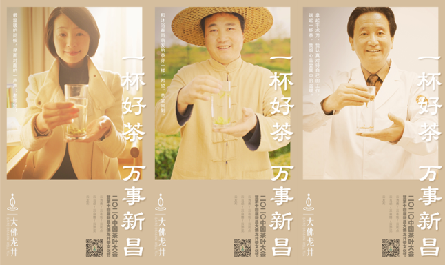 爲瞭(le)适配各個傳播途徑,提升傳播效果,基於(yú)品牌文脈故事,項目組創意瞭(le)“大佛龍井”的品牌輔助口号: